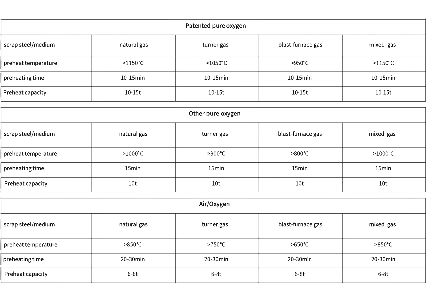 The average temperature of scrap steel is 1200°C in 30min and the central temperature is 1300°C