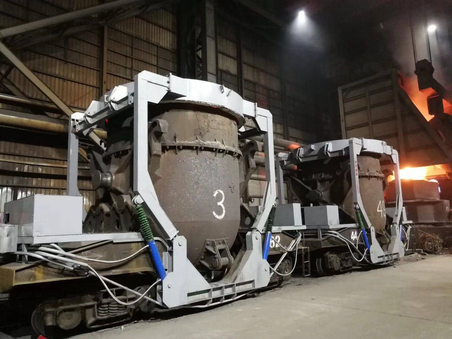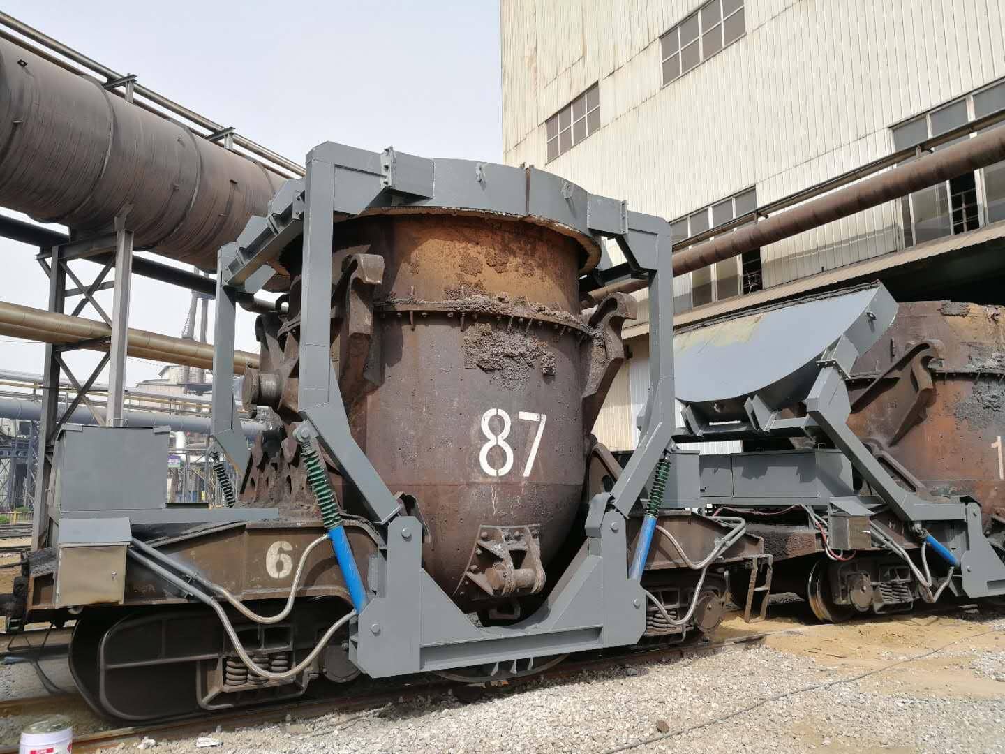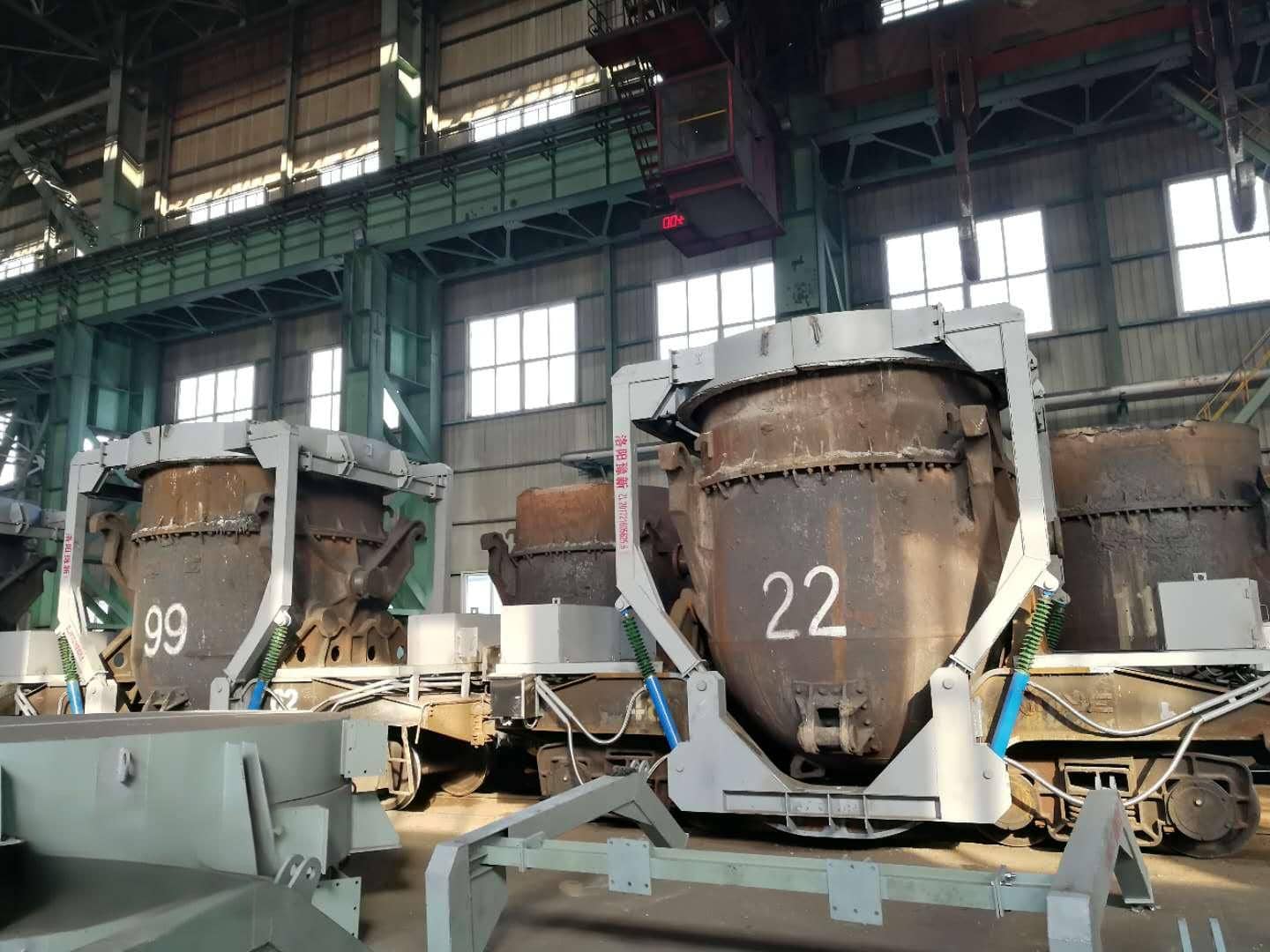 The iron water ladle cover lifting device is a special equipment developed for the heat preservation of the iron water ladle. Each iron ladle tank truck is with a set, which moves with the vehicle. Before the iron water ladle is ready to pour iron, the cover is lifted. After pouring iron, the cover is covered to the iron water ladle insulated. Before transporting to the steel plant, the cover is lifted, and after use, the cover is covered in time to achieve the purpose of preservation, energy saving, rain prevention and environmental protection.